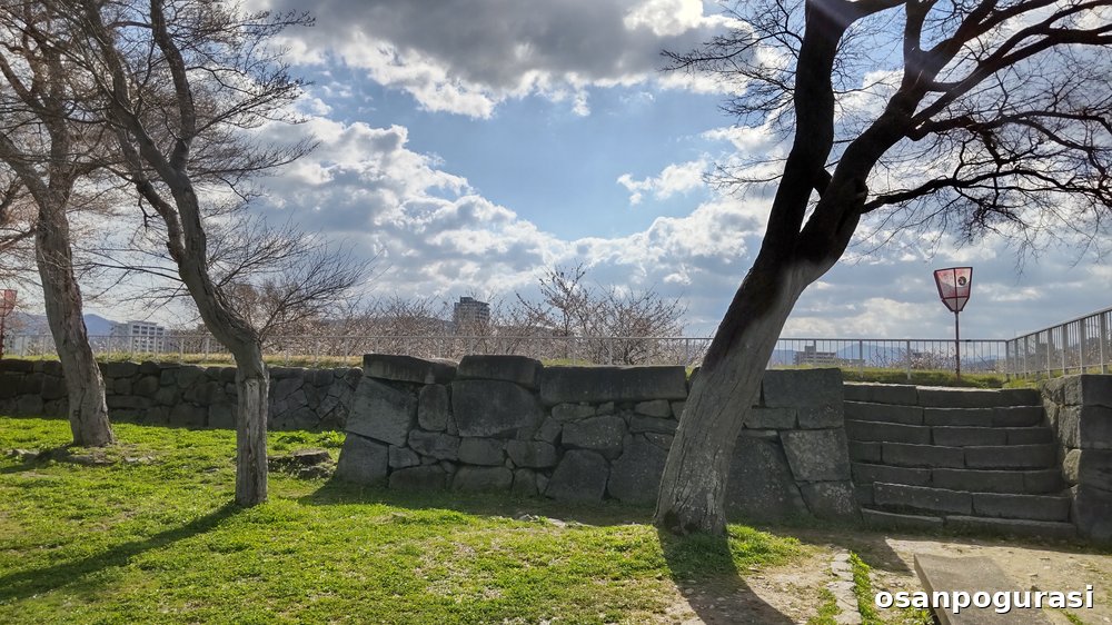 歴史ある石垣を眺めながらウォーキング