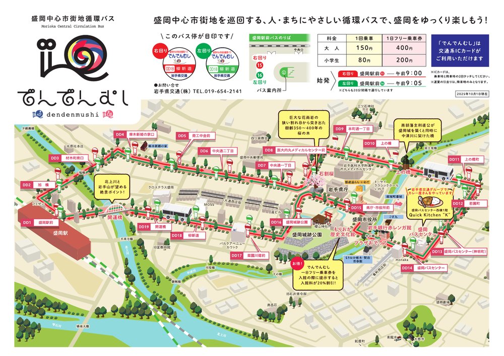 🚌 循環バス:でんでんむし 盛岡駅からの場合 左回りが早いです(5〜7分)