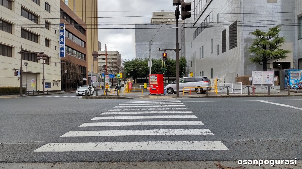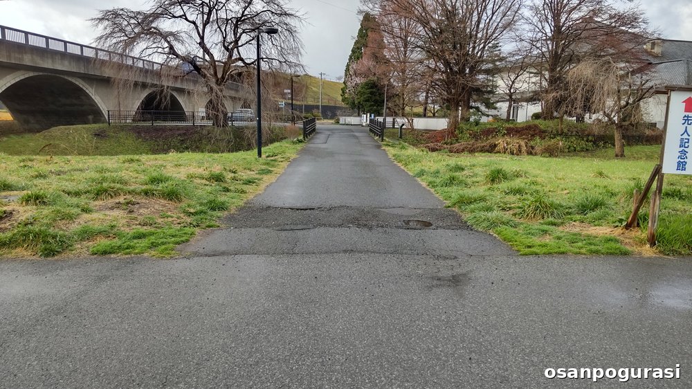 中の橋まで来たら左に曲がり、横断歩道を渡って右へ