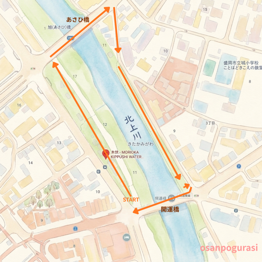 北上川沿い(木伏 開運橋〜あさひ橋)